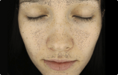 과도한 멜라닌 색소를 미세 입자로 분해합니다. 단순한 제거가
